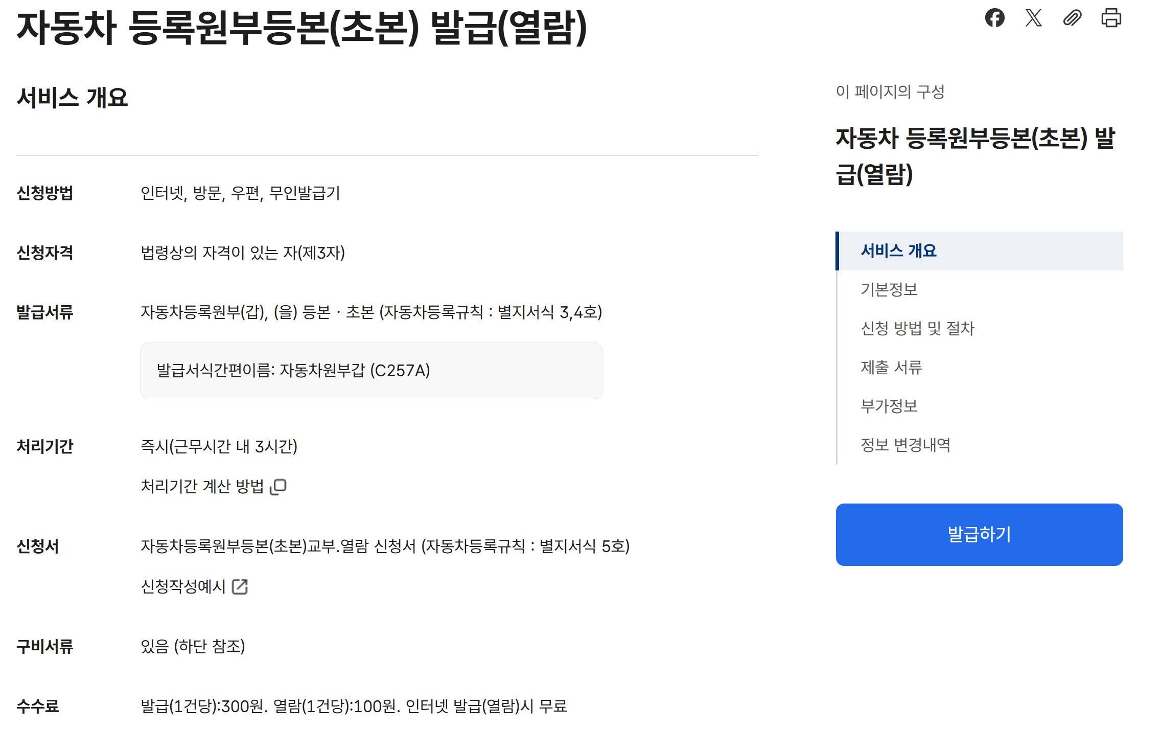 - 발급 수수료: 무료, 인쇄 시 프린터 이용 요금만 발생