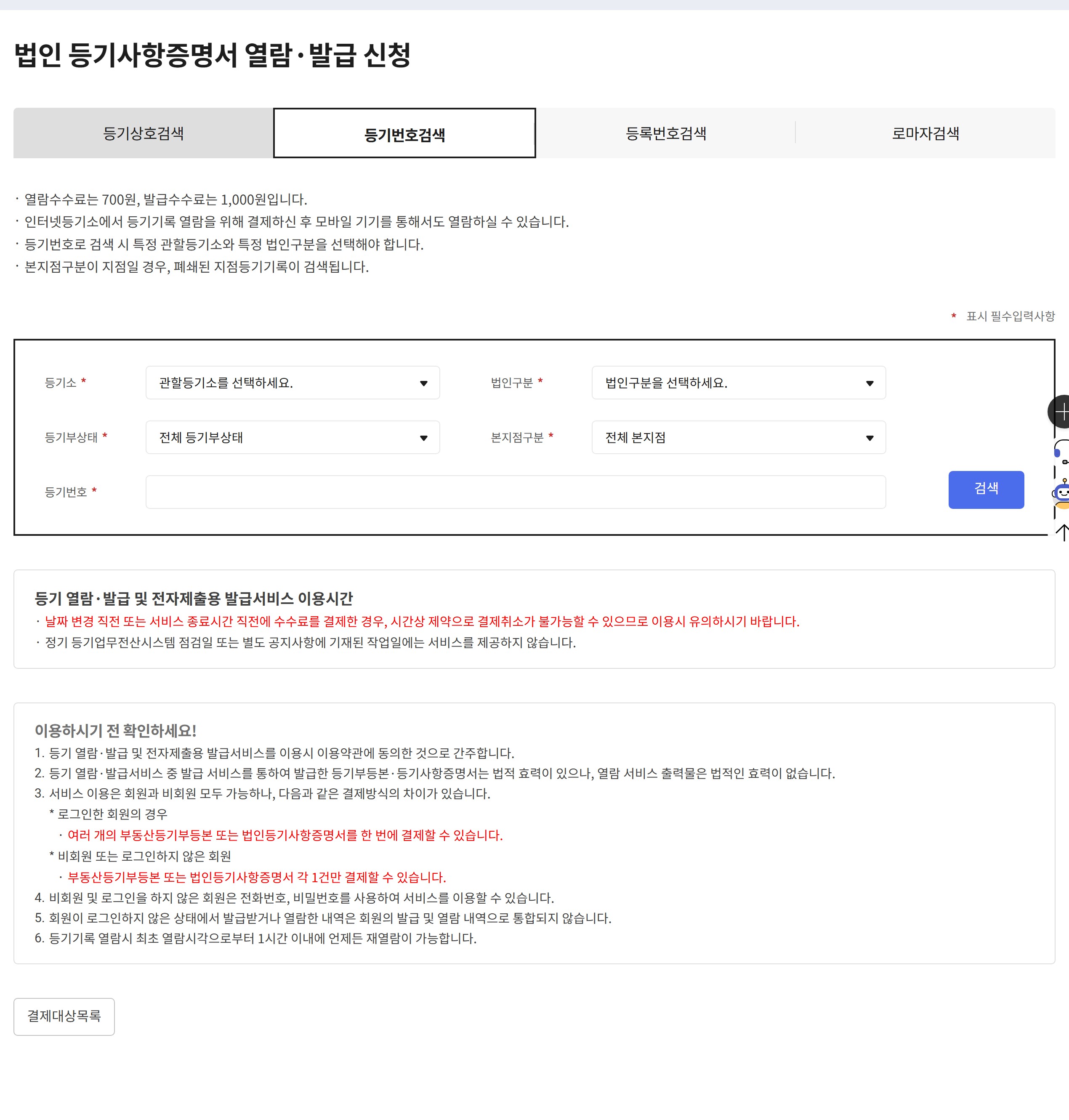 Q1. 법인 등기부등본 수수료 카드 결제 가능한가요?