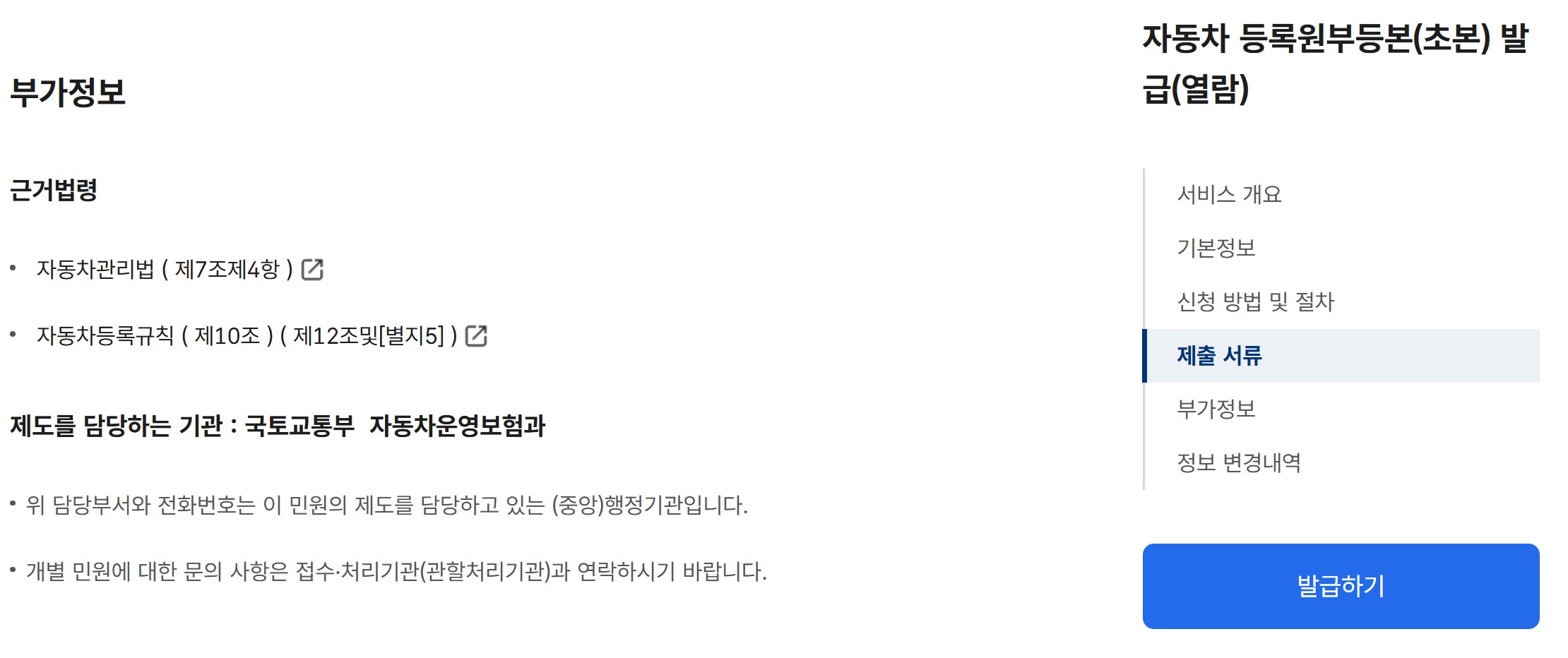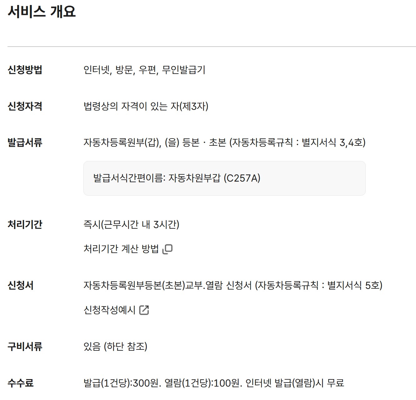 | 자동차등록원부 열람 (온라인) | 무료 |